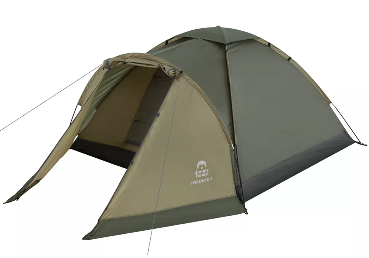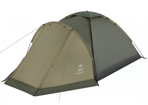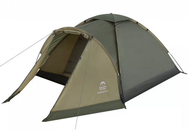 Двухместная однослойная палатка Jungle Camp Toronto 2 прекрасно подойдет для походов выходного дня на природе. Оснащена вместительным тамбуром для хранения рюкзаков, обуви и другого снаряжения. Имеет удобную двухслойную D-образную дверь в спальный отдел: первый слой из противомоскитной сетки позволяет проветривать палатку, защищая от насекомых. Также наверху палатки сделано широкое вентиляционное окно с непромокаемой накидкой, которую можно снять в солнечную погоду. Для удобного расположения вещей имеются внутренние карманы для мелочей. Чтобы с комфортом находиться в палатке в темное время суток есть возможность подвешивания фонаря. Использование оттяжек и колышков увеличивает ветроустойчивость палатки. Водостойкость палатки обеспечивается PU пропиткой тента, швы тента все проклеены, и применением прочного армированного полиэтилена в качестве материала дна палатки.