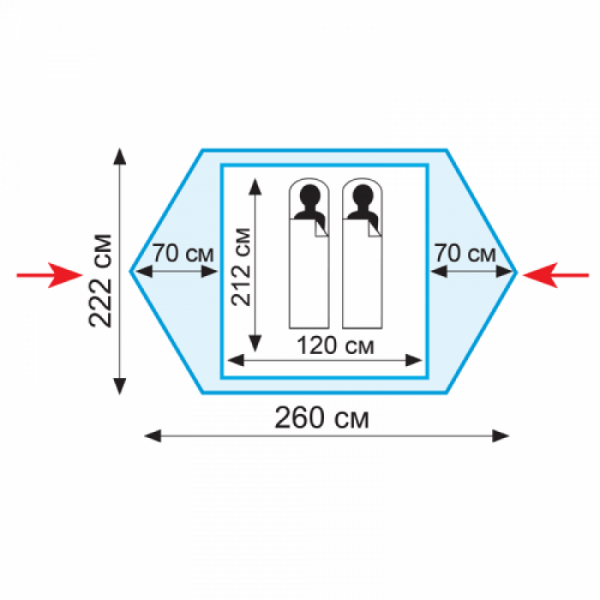 Размер внутренней палатки ДхШхВ, см 212 х 120 х 102