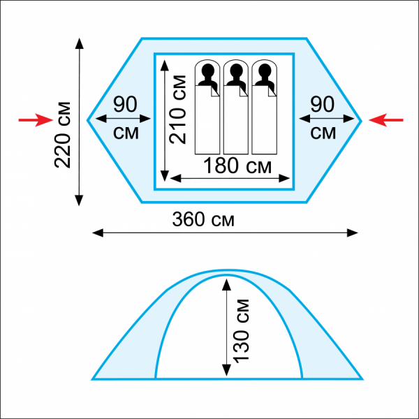 Внешний тент палатки устойчив к ультрафиолетовому излучению и имеет пропитку, задерживающую распространение огня