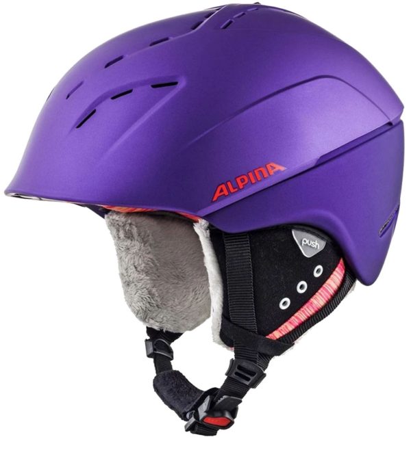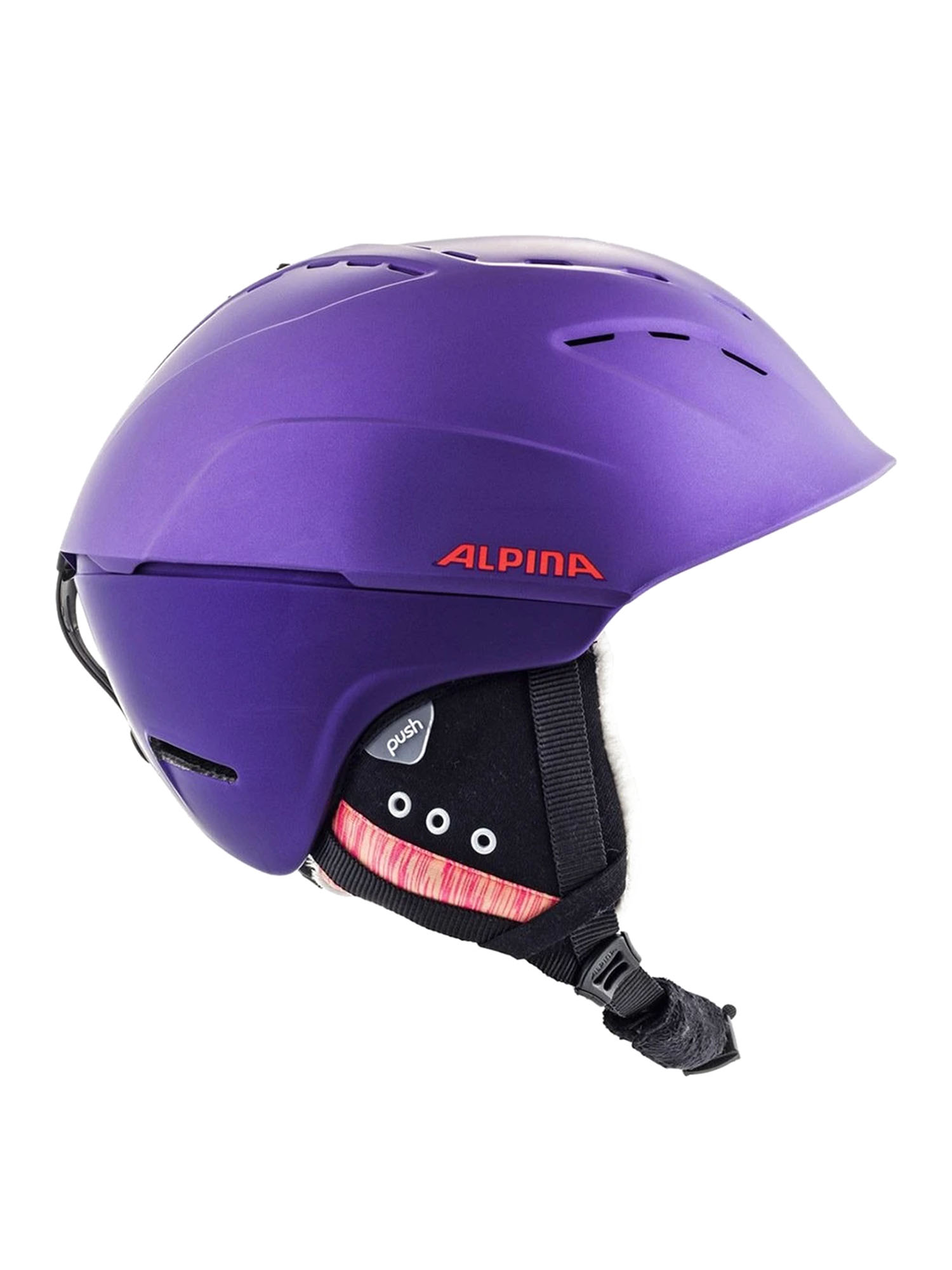 Ergomatic — проверенная система застежки на всех шлемах Alpina, пряжка фиксирующего ремня с красной кнопкой и многоступенчатой автоматически запирающей застежкой. Легко пользоваться даже в перчатках — ремень можно ослабить на подъемнике и снова затянуть перед спуском, механизм не может открыться самостоятельно в случае падения