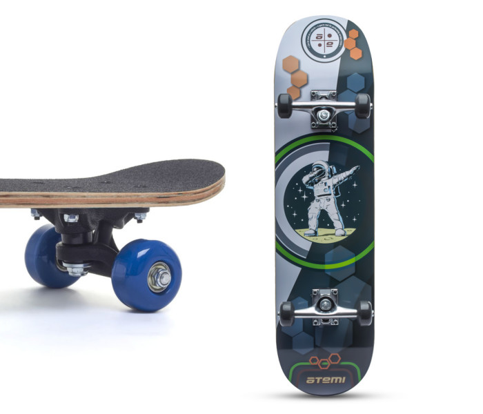 Дека: 79×20 см, 9 слоев китайского клена. Рисунок: фотопечать. Трак: Aлюминий 12,7 см; Колеса: размер 50×30 PU; Подшипник: ABEC-5. Максимальная нагрузка — 100 кг. Вес: 2,2 кг.